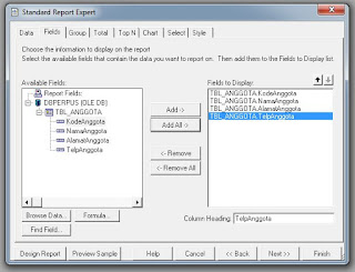 Karena kita akan membuat Laporan Anggota maka pilih TBL_ANGGOTA