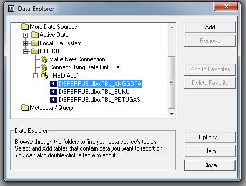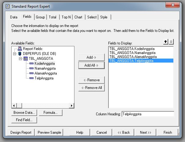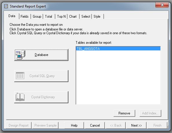 Karena kita akan membuat Laporan Anggota maka pilih TBL_ANGGOTA