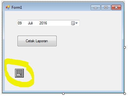 Pada Form1, saya tambahkan DateTimePicker1 dan Button1
